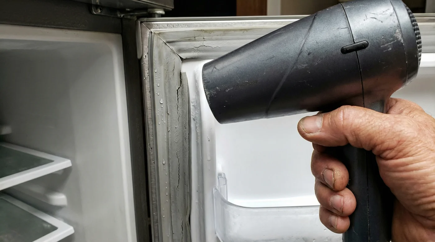 Para la nevera de familia numerosa, el daño es puramente mecánico. La puerta se abre cuarenta veces al día. El caucho en la parte inferior, cerca de la manija, recibe tirones constantes y roces bruscos. En este caso, el secador de pelo no solo sirve para limpiar, sino para devolverle la elasticidad perdida a un material que ha sido aplastado por la inercia de la rutina.