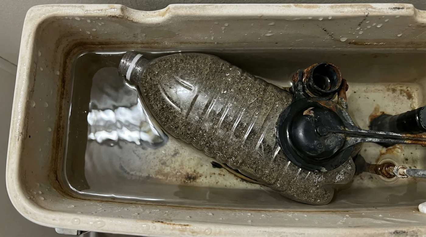 Este es el preciso instante donde una simple botella reciclada interviene para cambiar las reglas de la plomería doméstica. Al introducir masa estática adicional en el ecosistema acuático del tanque, logramos alterar la dinámica del agua sin la necesidad de girar un solo tornillo o usar llaves de tubo.