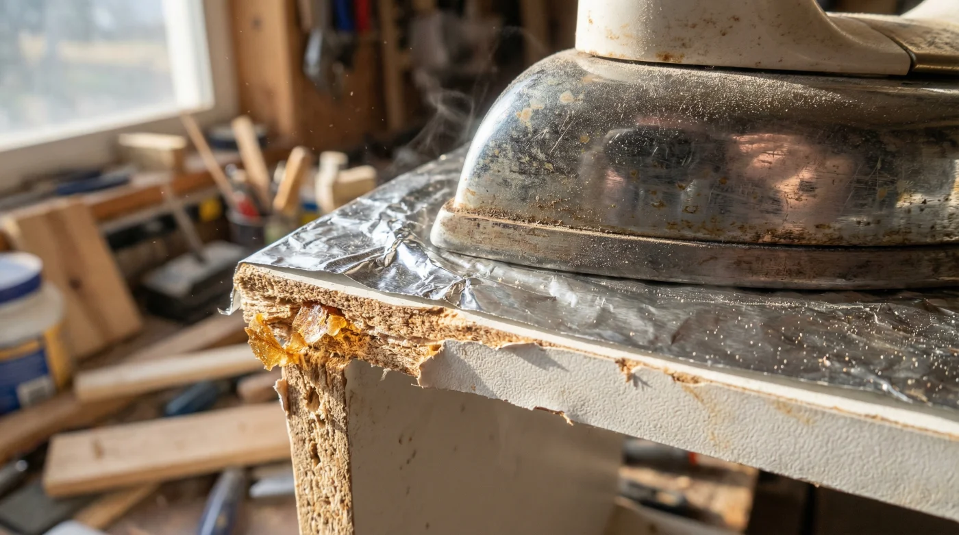 Aquí es donde entra a jugar un elemento impensado: el papel aluminio de tu cocina. No lo vas a usar para envolver nada, sino como un escudo térmico perfecto. Al colocarlo sobre la melamina, permites que el calor penetre directamente hacia el pegamento dormido, mientras proteges el acabado plástico exterior para que no se deforme ni pierda su color.
