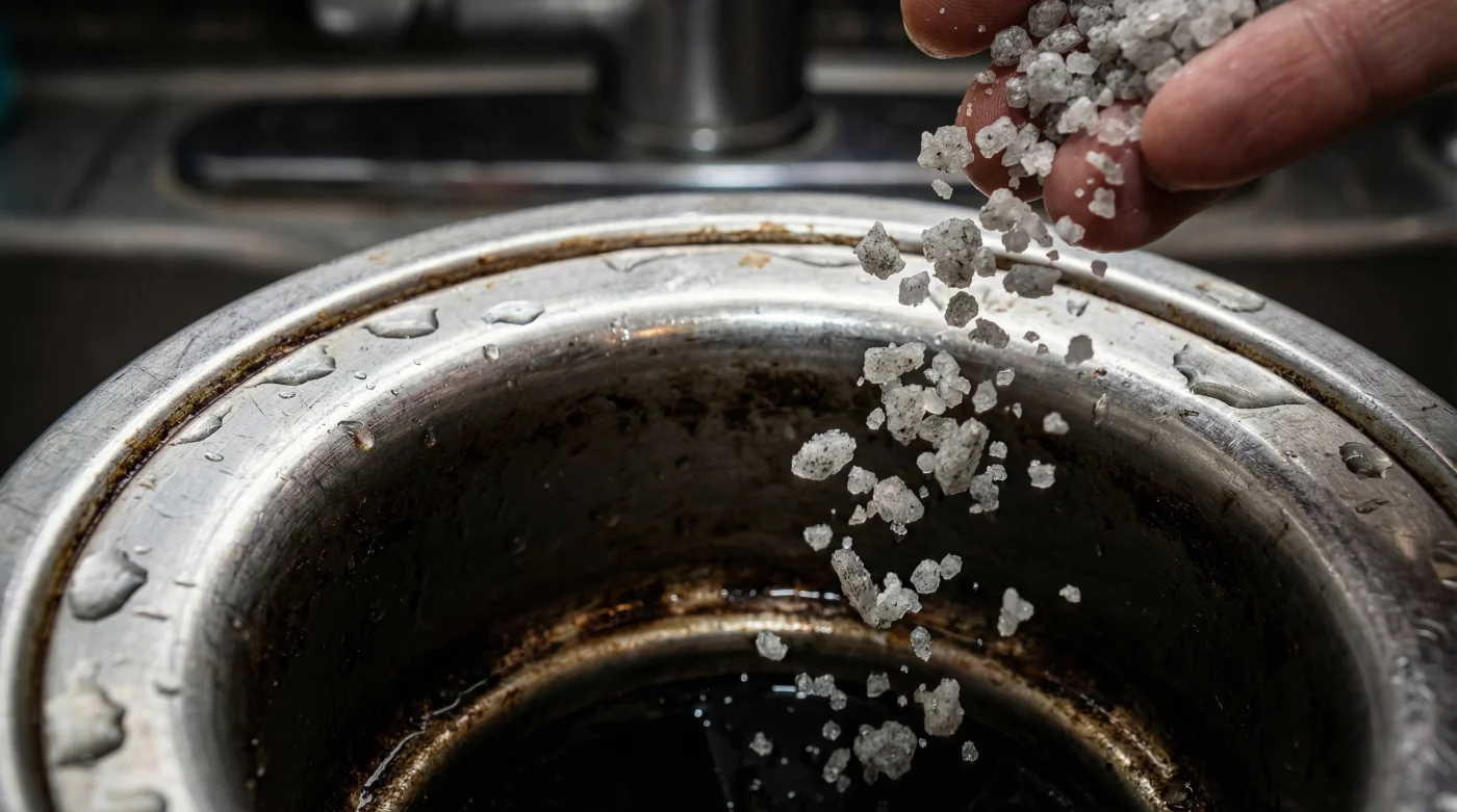 Aquí, el ritual de limpieza debe ser semanal y rápido. Un cuarto de taza de sal gruesa vertida el viernes por la noche asegura que los residuos orgánicos de la semana no pasen el fin de semana fermentándose y solidificándose en el codo del desagüe, previniendo esa acumulación traicionera.