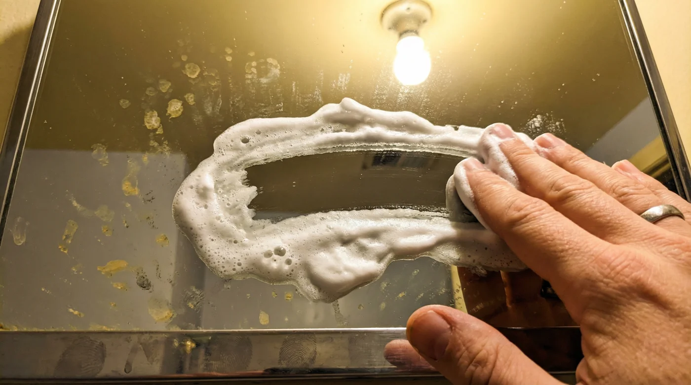 - Asegúrate de que el espejo esté completamente seco al empezar. No intentes limpiar sobre el vapor recién formado; estarías diluyendo trágicamente el poder natural del tensioactivo.