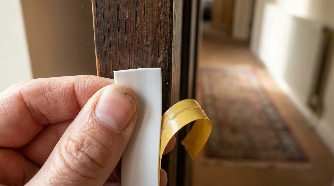 Además, debes evaluar la naturaleza del adhesivo. Busca tiras que en su respaldo cuenten con una cinta doble faz de espuma acrílica fina, no esas franjas de pegamento amarillo rígido. La espuma acrílica actúa como un amortiguador microscópico, absorbiendo las vibraciones cada vez que la puerta se cierra de golpe, evitando que el polímero se desprenda con el impacto.