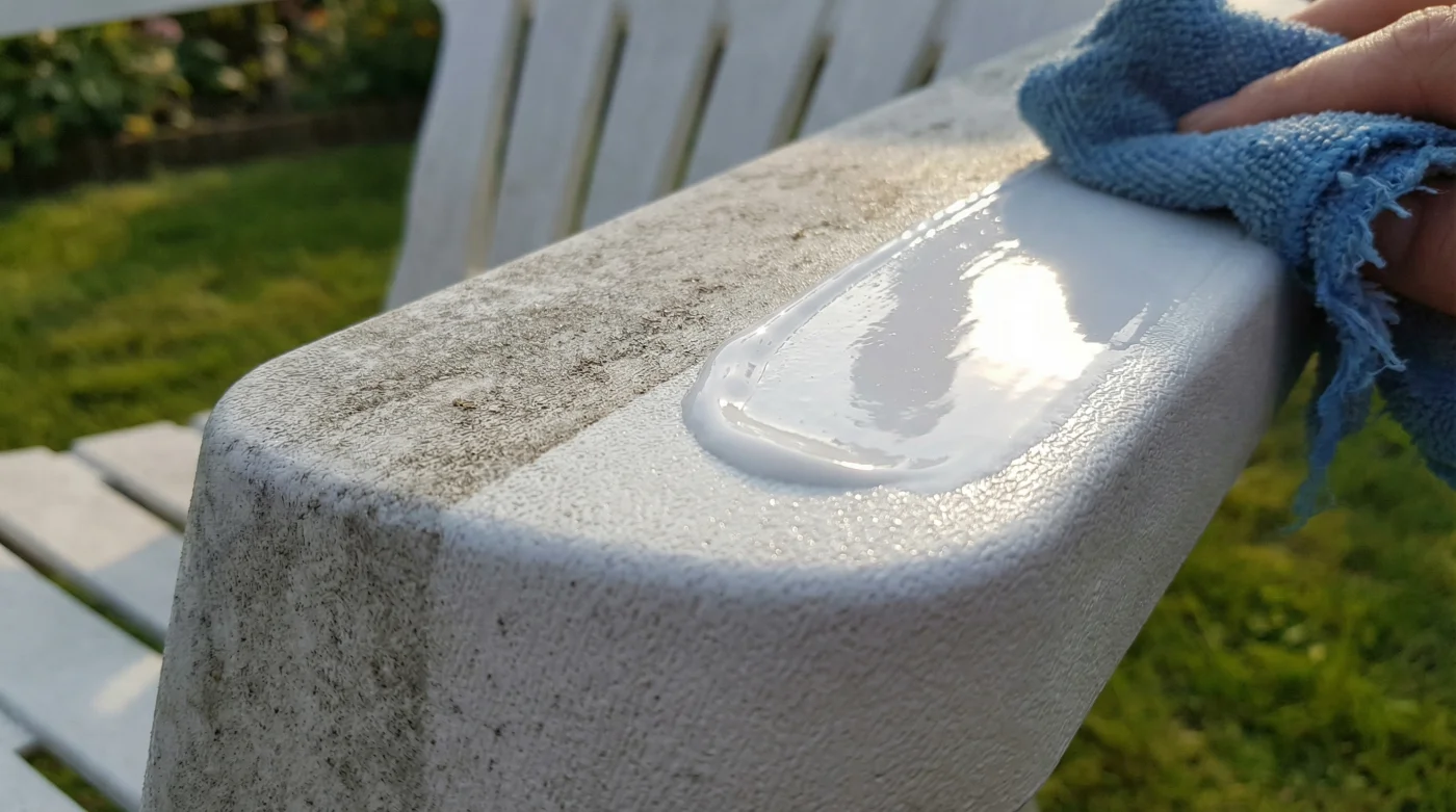 Aquí es donde la óptica del mantenimiento cambia por completo. Un mueble de exterior no es una baldosa de cerámica inerte; se parece mucho más a la pintura de un vehículo que pasa sus días bajo el implacable sol ecuatorial. El amarillamiento crónico que detestas no es suciedad acumulada, es pura y simple oxidación del material.