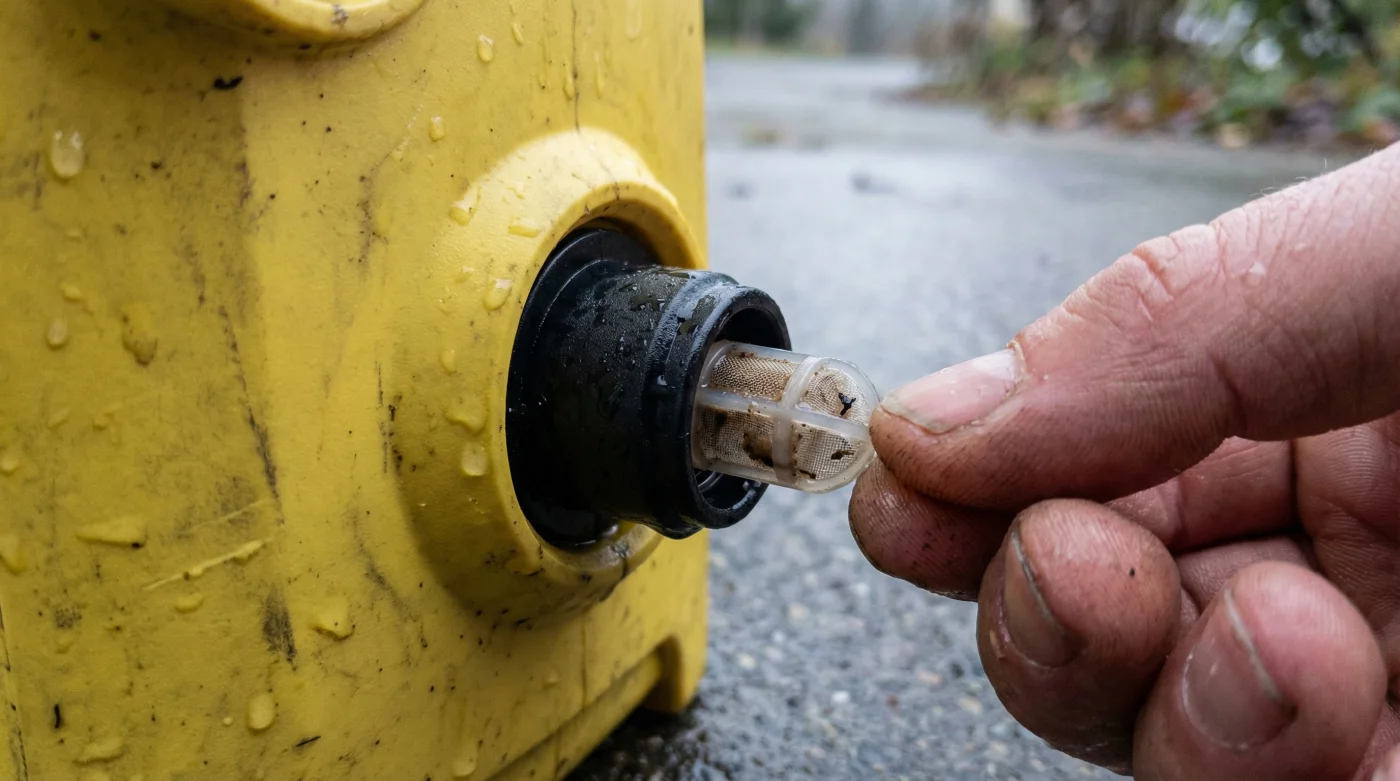 Asómate al tubo de entrada. Verás un pequeño cilindro de plástico blanco o transparente coronado por una malla milimétrica. Ese es nuestro culpable silencioso. Toma unas pinzas de punta plana y, con mucha suavidad, tira del pequeño puente de plástico central para extraer el filtro. Si no ha sido limpiado en meses, estará cubierto de una película viscosa, granos de arena microscópicos o una capa sólida de sarro blanco.