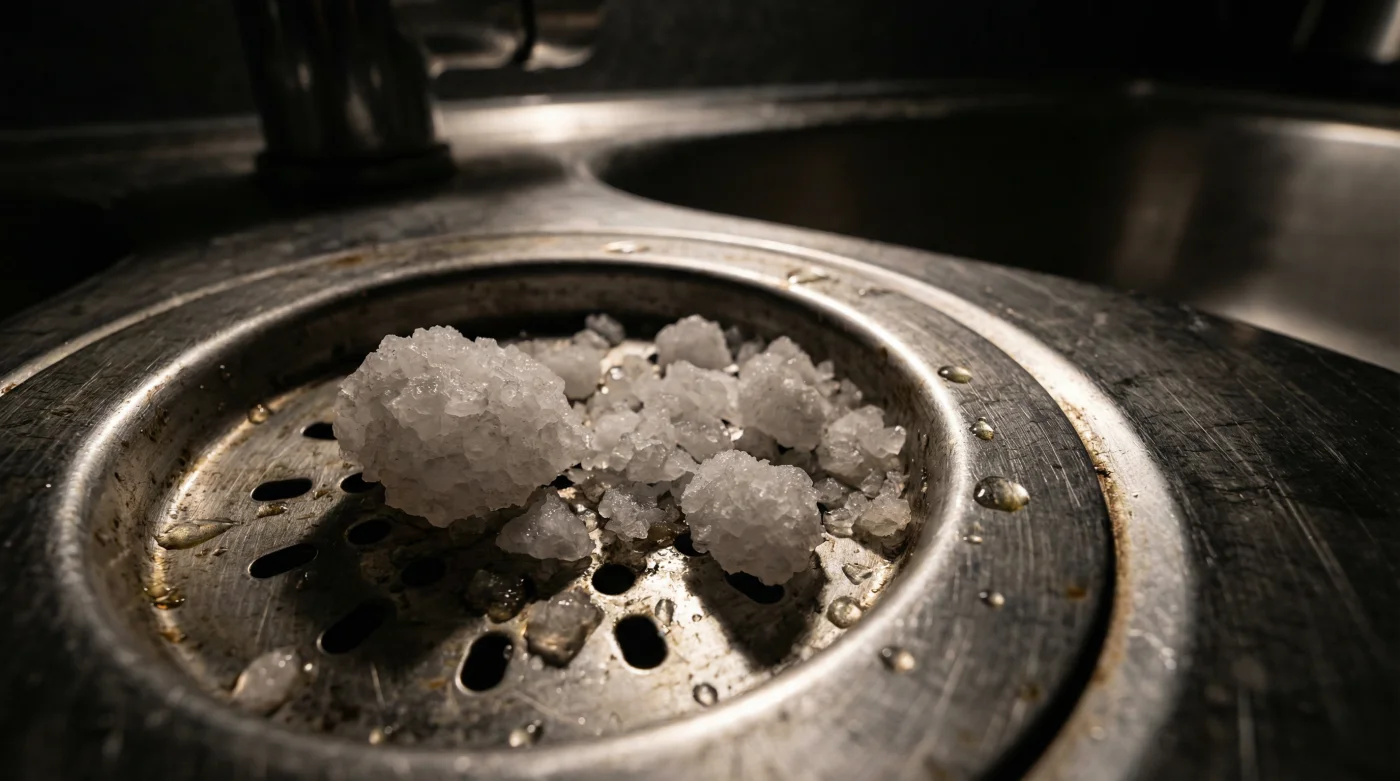 Al dejar caer un puñado de sal marina gruesa en el desagüe justo antes de ir a dormir, cambias el enfoque tradicional de destrucción de emergencia a un estado de mantenimiento orgánico. Mientras la casa duerme tranquilamente, los cristales de sal se abren paso lentamente, cortando la película de aceite y absorbiendo la humedad que la mantiene viva.