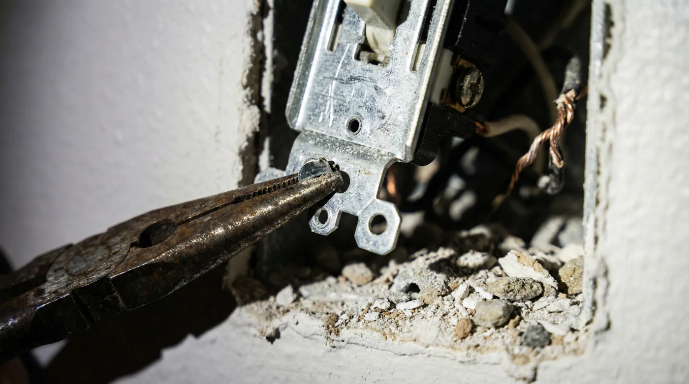 Piensa en las pestañas laterales de la caja metálica como las raíces superficiales de un árbol. Cuando la tierra cede tras una tormenta, la raíz necesita buscar un nuevo punto de apoyo para mantener el tronco estable. Al intentar apretar indefinidamente un tornillo sobre una rosca desgastada o una pestaña de retención que ha cedido por años de conectar y desconectar electrodomésticos, estás exigiendo fuerza bruta donde ya no existe tensión estructural.