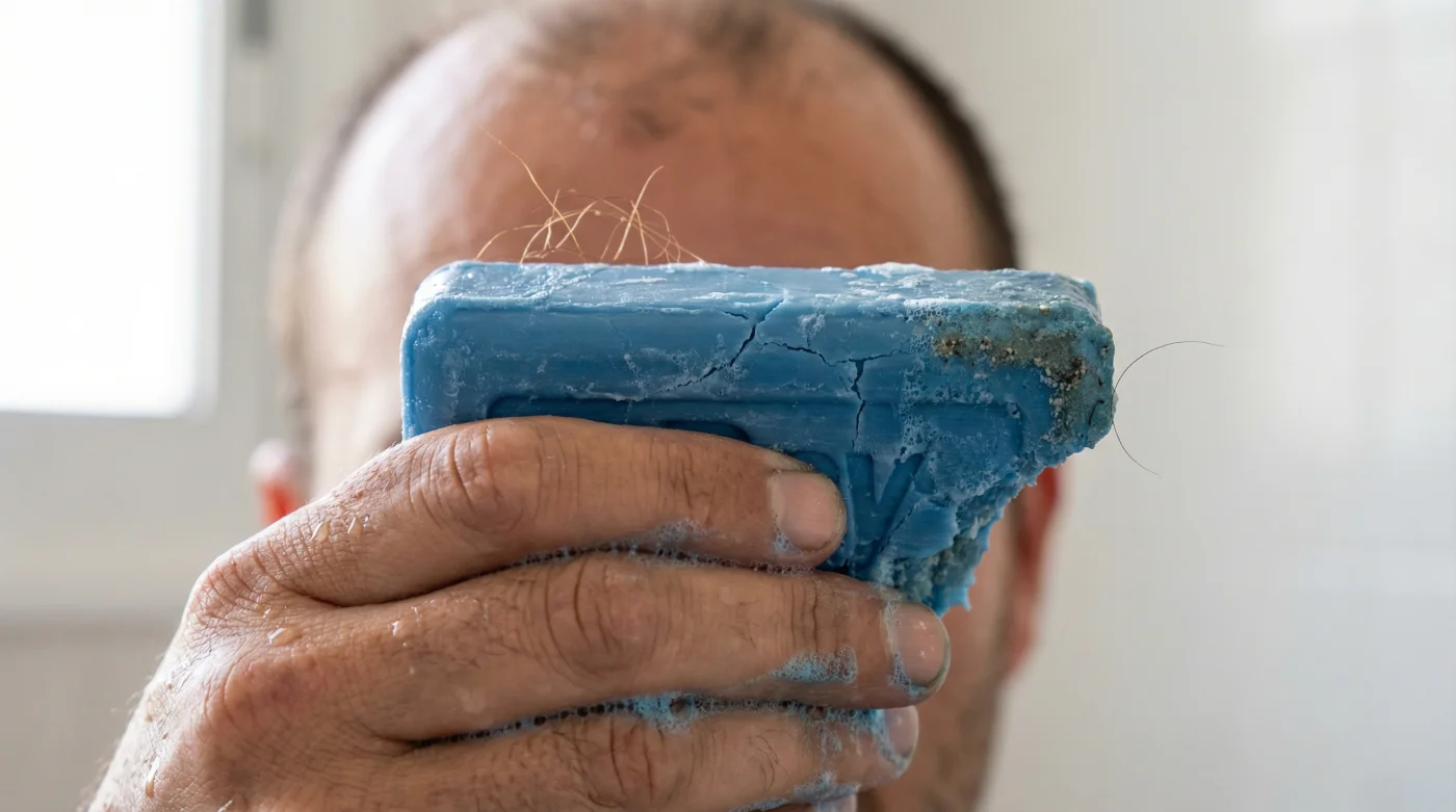 Usar este bloque azul en tu cabeza es como intentar limpiar una camisa de seda pura frotándola contra papel lija. Al principio, la tela parece estirarse, verse firme, pero en realidad sus fibras están gritando de dolor, a punto de romperse. Esa misma es la historia de tu cabello. La sensación de ‘limpieza extrema’ que notas en la ducha no es vitalidad; es tu cuero cabelludo perdiendo su capa protectora. La doctora Lucía, una dermatóloga con más de veinte años de experiencia clínica en el centro de Bogotá, lo explica con una claridad que asusta. Ella recibe cada semana a pacientes angustiados por una caída de cabello que no logran detener. ‘El pelo grueso que la gente siente después de lavarse con la barra azul no es fuerza capilar’, me cuenta mientras revisa un historial médico. ‘Esa textura áspera es el resultado de la inflamación. La cutícula del cabello se abre por el trauma químico, hinchándose como un mecanismo de defensa. El paciente cree que tiene más volumen, pero en realidad tiene un pelo agonizante que se va a quebrar en la próxima lavada’.