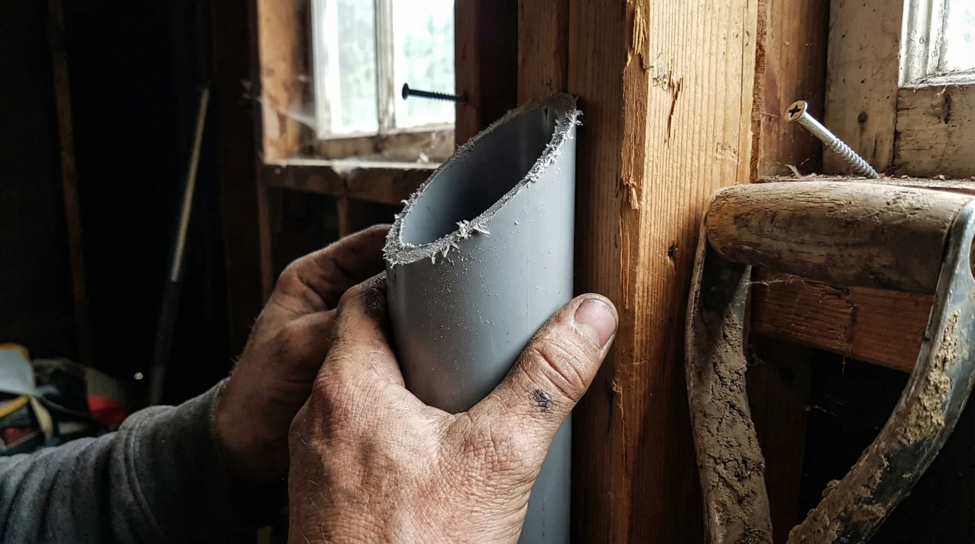 Aquí es donde la perspectiva cambia por completo. La solución definitiva a tu caos no está escondida en las costosas estanterías de diseñador en las grandes superficies, sino en el pasillo más humilde: la zona de fontanería. Sí, en esos cilindros sólidos que normalmente escondemos detrás del ladrillo y el cemento. Un simple tubo de PVC Pavco, modificado con una precisión intencional y un par de cortes, se convierte en el ancla perfecta, silenciosa y extremadamente resistente para tus herramientas más rebeldes.