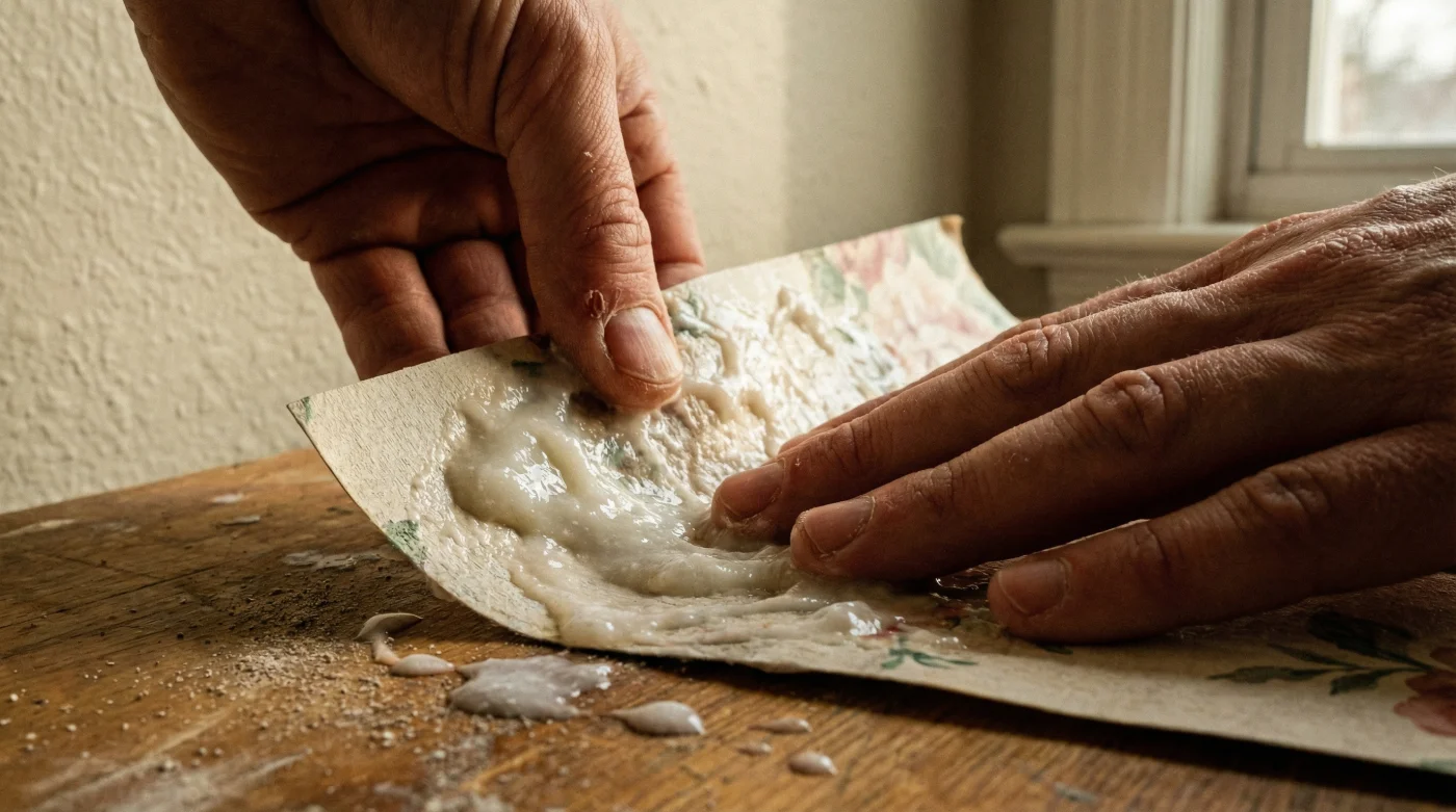 Cuando el almidón gelatinizado pierde humedad y se seca sobre la pared, crea una matriz cristalina muy tensa. Sostiene el papel de colgadura con una fuerza sorprendente, soportando el roce diario de los muebles, pero al más mínimo contacto sostenido con agua tibia, esa matriz estructural colapsa dócilmente y se disuelve en cuestión de segundos sin dejar cicatrices.
