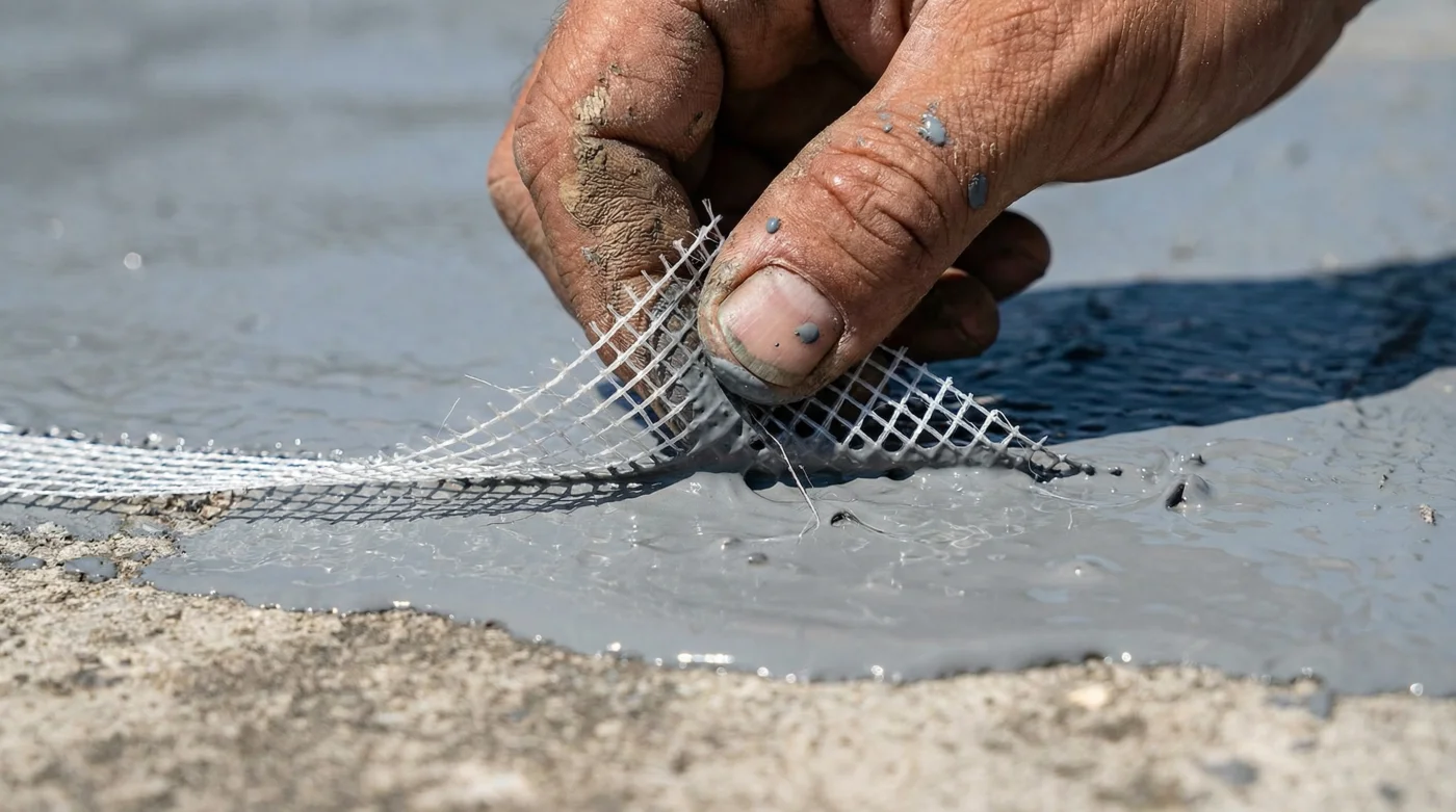 Aquí es donde la estrategia cambia y pasamos de pintar a construir un puente estructural. La respuesta no está en el grosor del líquido, sino en el esqueleto que le pones adentro. Al integrar una malla de fibra de vidrio económica directamente en la primera capa húmeda de un sellador de alto rendimiento como los de la línea Sika, estás creando un material compuesto. Es el mismo principio del hierro dentro de las columnas de tu casa: el concreto soporta el peso, pero el hierro soporta la tensión. La malla absorbe la fuerza de la dilatación térmica, permitiendo que la grieta bajo ella se abra y cierre sin romper la barrera impermeable superior.