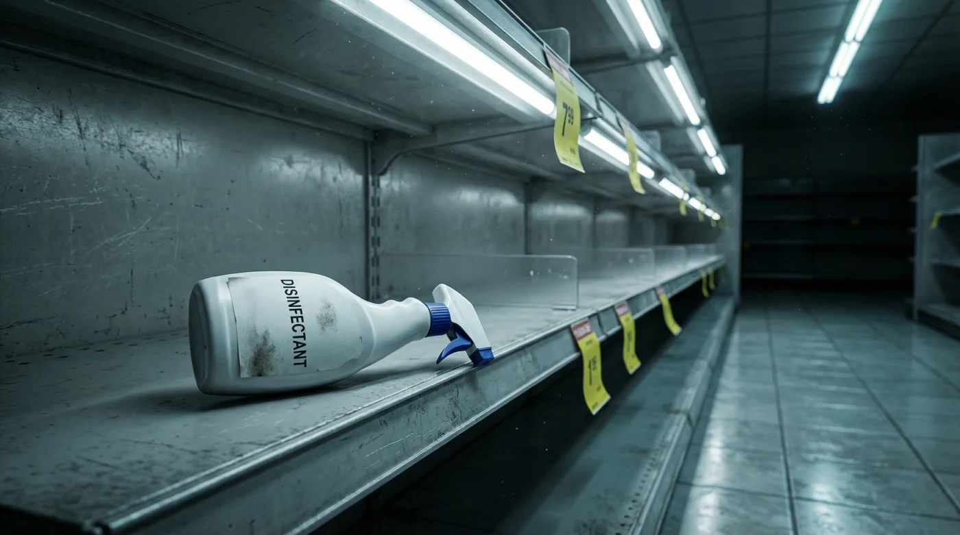 Pero al girar hacia la sección de aseo, notas algo profundamente inusual. El eco metálico del estante vacío resuena justo donde normalmente reposarían decenas de botellas naranjas y azules. Los limpiadores desinfectantes han desaparecido, dejando solo etiquetas de precios de 4.500 pesos y un espacio extrañamente desolado en medio del pasillo.