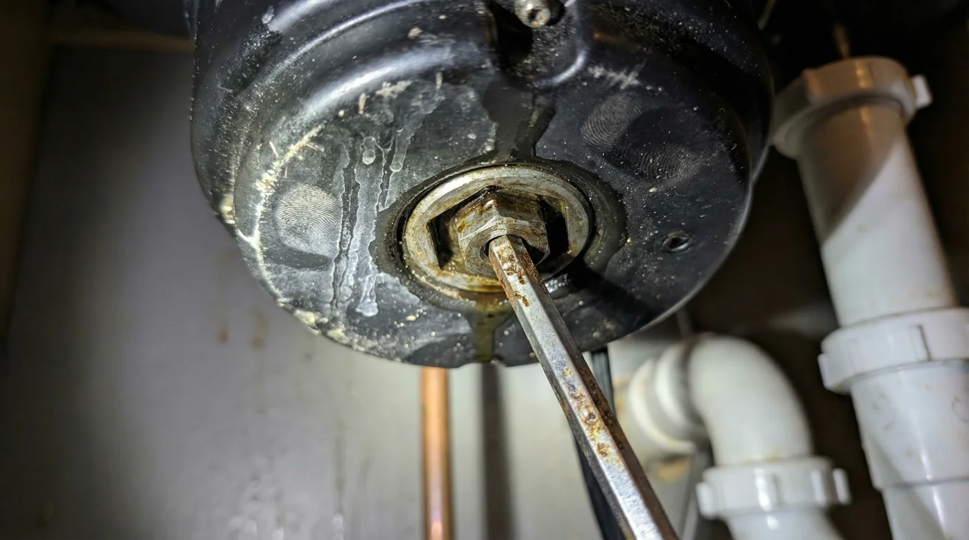 El problema de convivencia con estos equipos es que los imaginamos como licuadoras gigantes, ciegas y amenazantes que tragan todo a su paso sin contemplación. En la realidad física, son centrífugas giratorias increíblemente simples, diseñadas con un alto grado de prevención. Cuando un hueso de pollo resistente, un carozo de durazno o un trozo de yuca dura se interpone entre la pared y el disco triturador, las aspas se bloquean mecánicamente para evitar que el motor siga forzándose y termine incendiado por sobrecalentamiento. Aquí está el detalle técnico que cambia por completo la dinámica de mantenimiento en tu cocina: el ingeniero que diseñó esta máquina ya anticipó tu dolor de cabeza dominical y te dejó una puerta trasera. Si te agachas, abres las puertas del mueble de madera y pasas la mano por la base exterior de metal del equipo, justo en el centro inferior, encontrarás un pequeño orificio. Tiene forma hexagonal. Ese es tu punto de control manual, un acceso directo al corazón del motor. Héctor, un técnico bogotano de 52 años que lleva tres décadas arreglando cocinas desde Chapinero hasta Usaquén, siempre deja escapar una sonrisa contenida cuando llega a un llamado por un atasco de este tipo. “La gente me paga casi un día de salario mínimo por hacer un movimiento de muñeca que les tomaría tres segundos”, confiesa mientras guarda sus pesadas herramientas en el maletín de cuero. Según la experiencia diaria de Héctor en los hogares de la capital, más del 90% de los incidentes con estos trituradores no requieren desarmar la intrincada tubería de PVC ni vaciar litros de químicos corrosivos que dañan los empaques. Solo exigen una herramienta minúscula: una llave Allen estándar de un cuarto de pulgada. Sí, exactamente la misma llave pequeña y plateada que tienes olvidada en un cajón desde aquella tarde en que armaste el mueble del televisor.