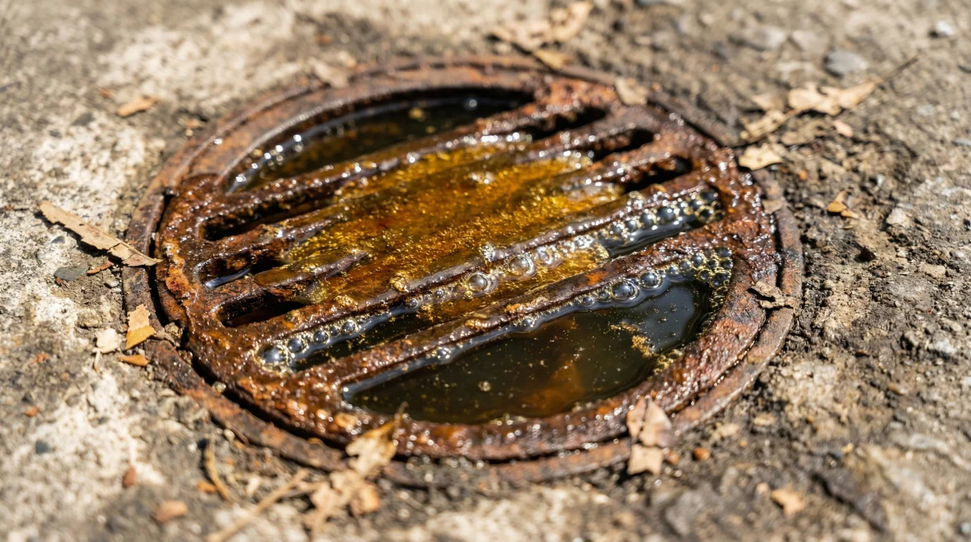 Para el patio descubierto: Aquí el sol pega directo y la brisa constante hace su trabajo evaporador. El agua del sifón puede desaparecer en menos de 48 horas durante un verano intenso. Necesitas usar aceite de cocina denso, el que ya ha sido frito varias veces, porque su pesada viscosidad crea una barrera impenetrable contra las altas temperaturas. Pásalo religiosamente por un colador fino primero para retirar restos de comida.