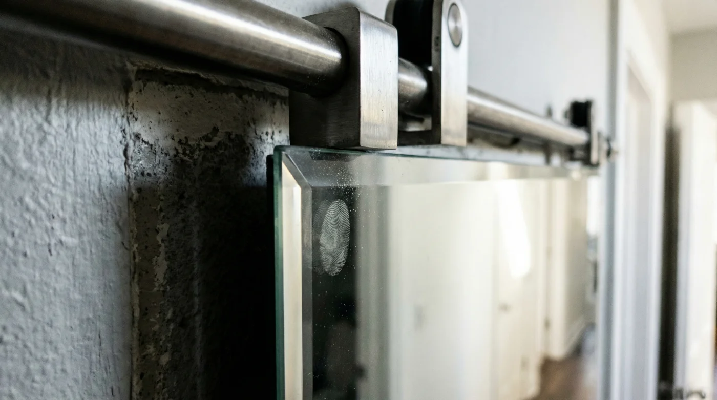 Aquí es donde rompes el mito costoso de las remodelaciones a medida. La magia de la amplitud no reside en el cristal en sí, sino en el mecanismo que utilizas para suspenderlo. Piensa en el espejo no como un cuadro estático que cuelgas con una puntilla, sino como un telón fluido que se desliza suavemente. Usar un riel corredizo de clóset, de esos que cuestan apenas unos 40.000 COP, cambia por completo la física visual de tu pared.