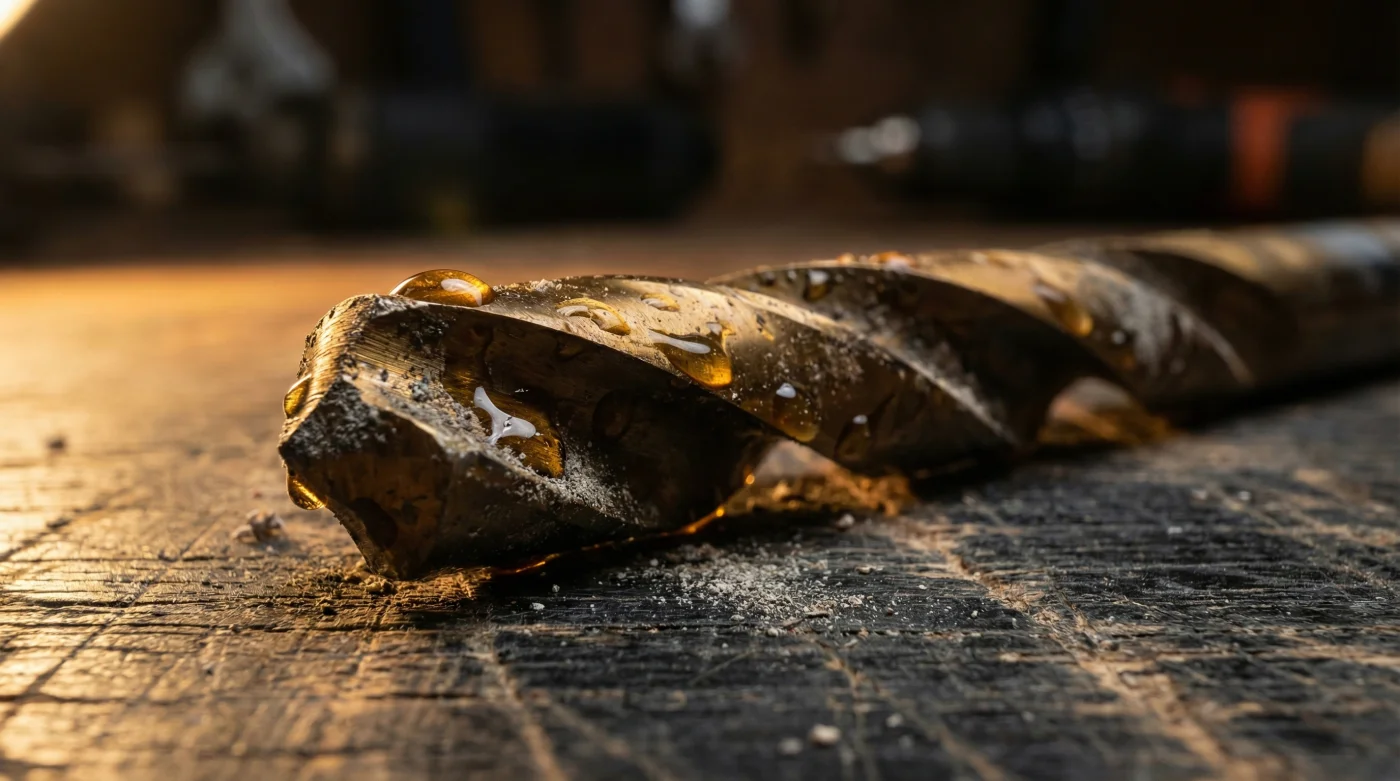 Es muy probable que en el fondo de tu caja de herramientas ya tengas brocas de titanio que han empezado a oscurecerse en la punta, con tonos azulados o negros que evidencian una quemadura por sobrecalentamiento pasado. Aunque el aceite no puede revertir el filo que ya se fundió, aplicarlo generosamente evitará que el daño estructural avance y termine por partir el metal.