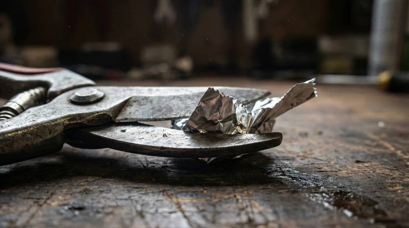 Para el perfeccionista del balcón: Si tus tijeras solo tocan tallos tiernos de albahaca, suculentas o geranios, el problema rara vez es de impacto estructural. La savia pegajosa actúa como un freno invisible contra el corte. En este caso, el papel aluminio no solo asienta el filo sutilmente, sino que su fricción agresiva ayuda a desprender las resinas sin rayar el recubrimiento original del acero.