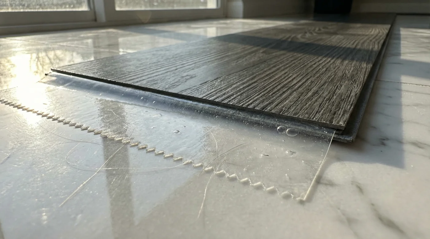 No todos los espacios exigen el mismo nivel de intervención. La forma en que aplicas este principio varía según la intensidad de uso y las condiciones ambientales de cada habitación en tu hogar. Para el purista del diseño que busca renovar la sala de estar. Aquí el tráfico es constante pero seco. Necesitas crear una cuadrícula perfecta. **Colocar tiras de cinta cruzadas** cada treinta centímetros asegura que las láminas largas no se desplacen cuando camines sobre ellas. Es un trabajo de paciencia geométrica que recompensa con una estabilidad silenciosa. Para el inquilino ansioso que detesta el baño de su apartamento. La humedad es el enemigo natural de los adhesivos temporales. En este caso, la técnica exige superponer ligeramente los bordes de la cinta para crear un escudo casi impermeable sobre la cerámica vieja, evitando que el vapor de la ducha alcance el pegamento original del vinilo y lo debilite. En zonas pequeñas como un estudio o balcón cerrado, puedes optar por un perímetro reforzado. **Sellar solo los bordes extremos** y añadir un zócalo provisional adherido con cinta doble faz es suficiente para mantener todo el conjunto firme, reduciendo a la mitad el tiempo de instalación y la inversión en materiales.