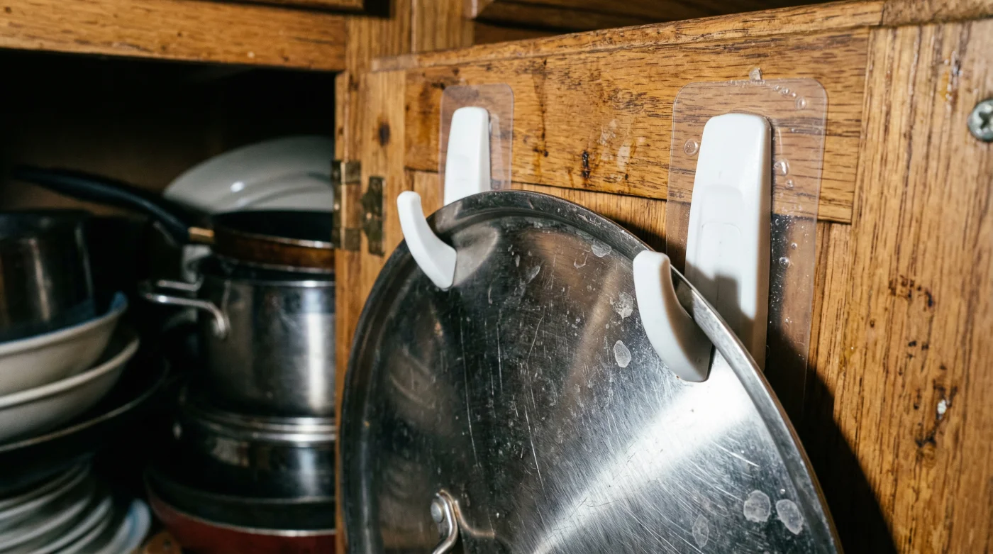 ¿El calor de las ollas derretirá el pegante de los ganchos? No, siempre y cuando las dejes enfriar antes de guardarlas. Guardar objetos calientes atrapa vapor en la madera de los gabinetes, lo cual debes evitar de todas formas por la salud del mueble.