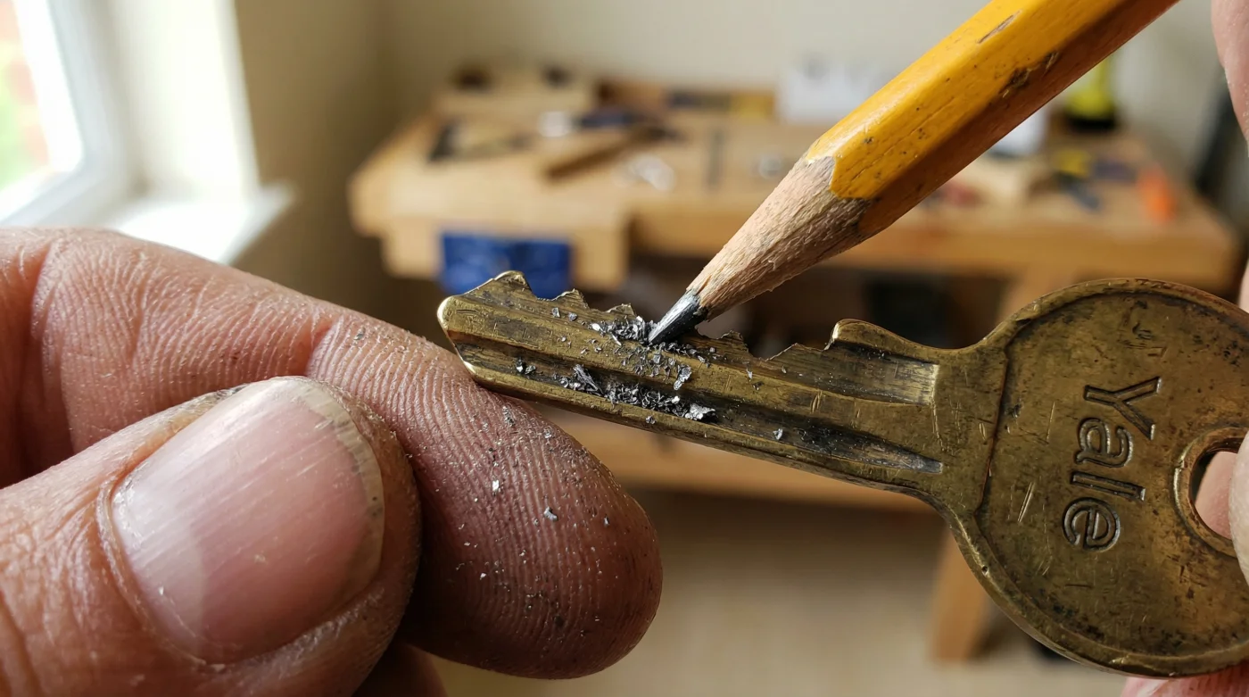Ahora vamos a la acción. Este no es un trabajo de fuerza brutal, sino de paciencia táctil. Toma tu llave problemática, límpiala con un paño seco para retirar la humedad o la grasa acumulada de tus manos y consigue un lápiz. Los mejores son los lápices de dibujo suaves, marcados como 2B o 4B, porque sueltan el polvo de carbón de manera mucho más generosa.