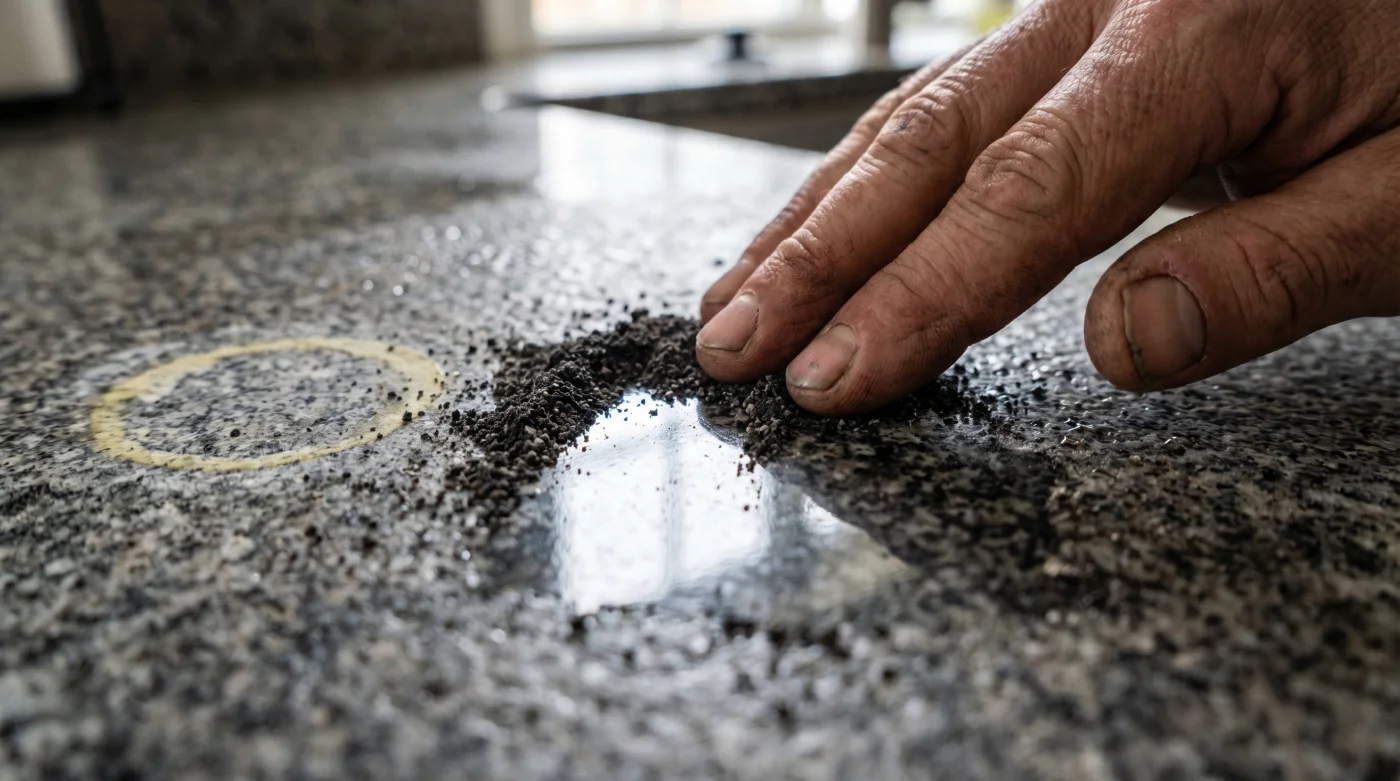 Tratar el granito como si fuera vidrio es el primer error que cometemos. Esta piedra respira, absorbe y reacciona casi como una piel muy densa. Cuando aplicas ceras sintéticas sobre una mancha de agua dura o grasa incrustada, simplemente estás sellando la suciedad. Es como intentar respirar a través de una almohada; la piedra se asfixia y su color natural se apaga lentamente bajo esa barrera plástica.