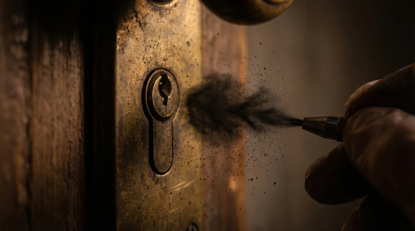 | Limpieza Previa | Usar alcohol isopropilico elimina años de grasa acumulada antes de aplicar el polvo seco. | Restaura cerraduras que parecian perdidas sin necesidad de desarmar la puerta por completo. |