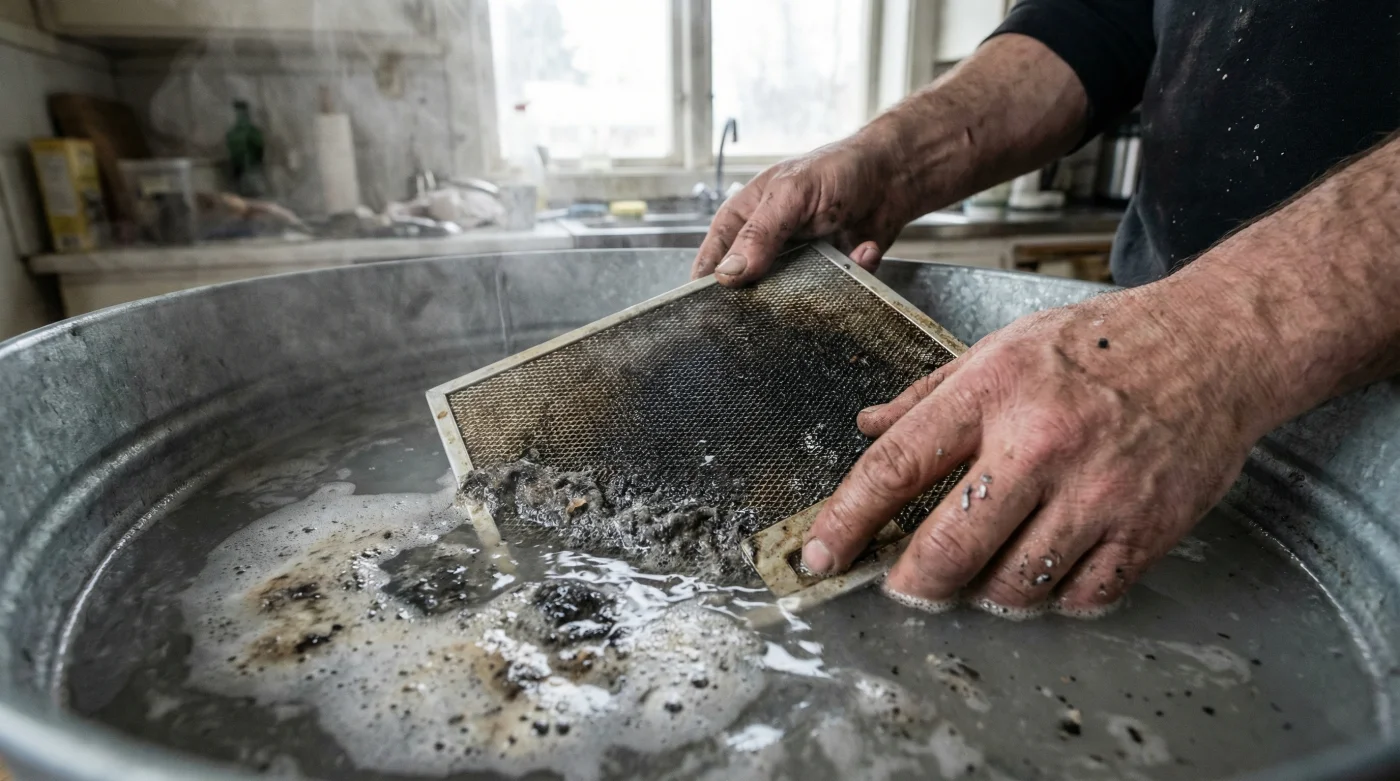 Imagina que intentas correr una maratón respirando a través de una almohada de lana. Eso es exactamente lo que hace el motor de tu campana extractora cuando sus filtros están saturados. La fricción narrativa de la limpieza moderna nos ha convencido de que la suciedad extrema requiere violencia química extrema. Creemos que solo un líquido fluorescente y tóxico es capaz de cortar esa película de grasa incrustada que se solidifica con los cambios de temperatura de nuestra cocina.
