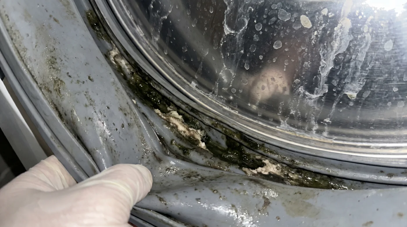 Para evitar que el agua se derrame sobre tus baldosas, estas máquinas dependen de un sello de goma hermético. Este grueso labio gris es un escudo perfecto contra las fugas, pero también crea un microclima oscuro y húmedo. Es como respirar a través de una almohada húmeda; el ambiente perfecto para que el enemigo silencioso de tu ropa prospere.