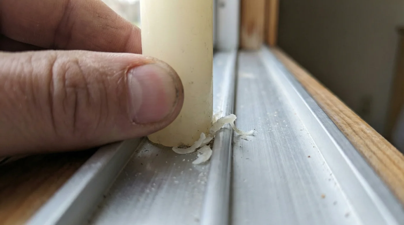 - Ventanas corredizas de aluminio destraban sus rieles frotando esta cera slida.