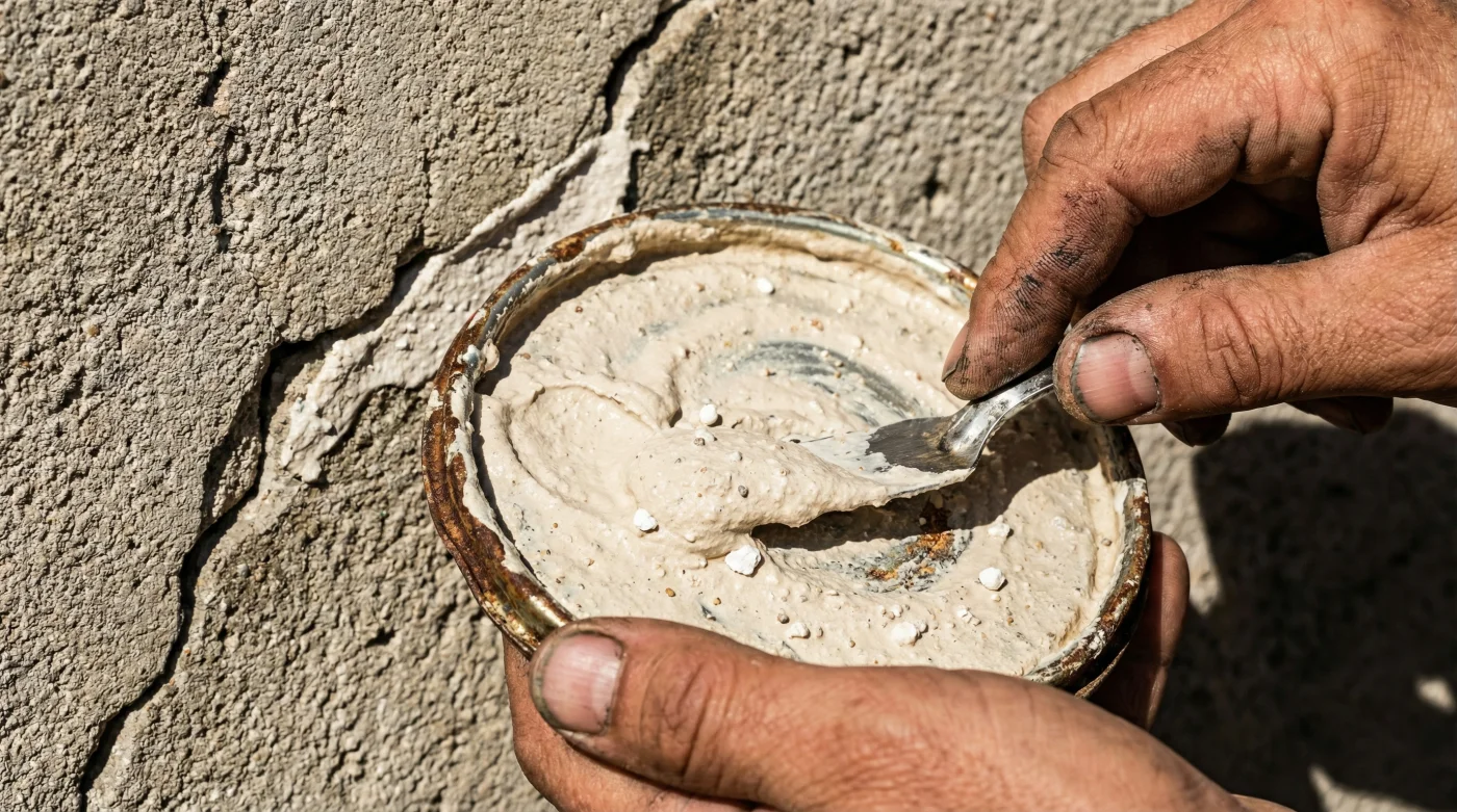 A diferencia de usar yeso o cemento blanco, que se vuelven rígidos como la piedra y terminan fracturándose con los cambios de temperatura, el talco industrial mantiene la elasticidad de la resina. El resultado es un tapón perfecto que sella la humedad y resiste la dilatación de la pared cuando el sol de mediodía calienta el estuco.