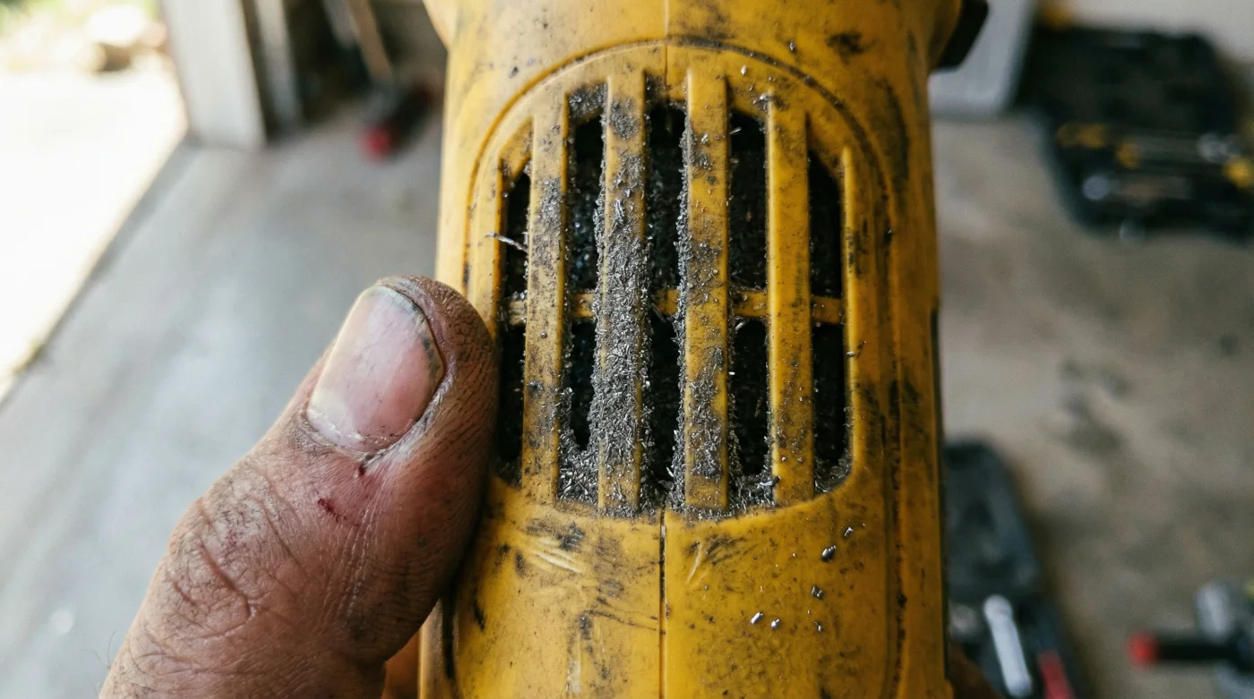 Piensa en el motor de tu DeWalt como los pulmones de un atleta. Necesita un flujo constante de aire fresco para enfriar el inducido y las bobinas que giran a miles de revoluciones por minuto. Ahora, imagina a ese atleta intentando correr una maratón mientras respira a través de una almohada llena de acero y aserrín. Eso es exactamente lo que le ocurre a tu pulidora cuando las rejillas de ventilación laterales se obstruyen.
