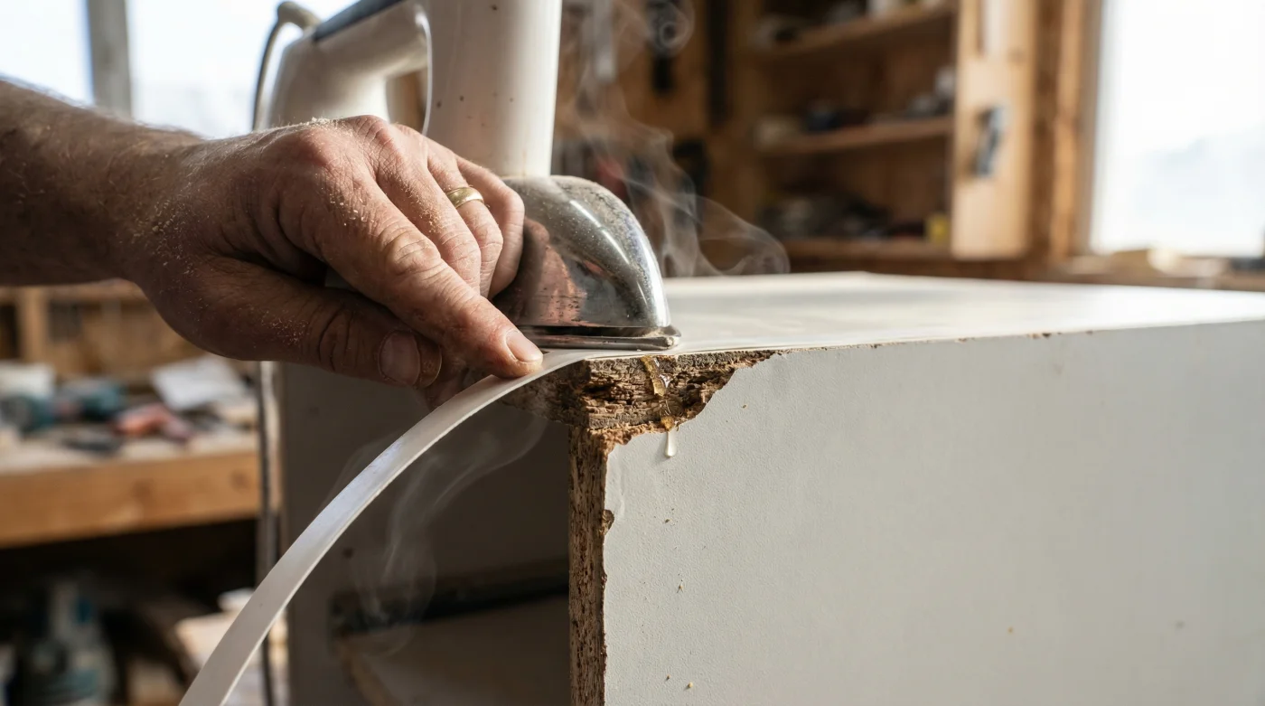 La melamina no es un material frágil y definitivo, es simplemente incomprendido. Imagina que tu mueble tiene una piel sintética. Cuando esa piel se rompe por un golpe accidental con la silla, no necesitas reconstruir el hueso; solo necesitas aplicar un injerto. Solemos desechar armarios y estantes que costaron más de 300.000 pesos colombianos solo por una esquina astillada, asumiendo que es imposible lograr ese acabado de diseñador en casa. Ignoramos que el calor doméstico tiene la capacidad exacta para reactivar su estructura y adherir una nueva barrera protectora.