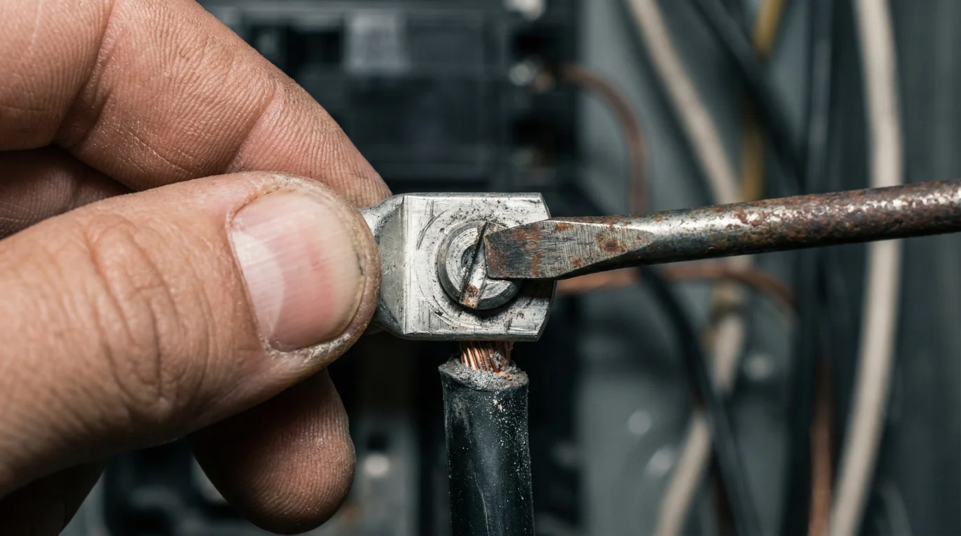 | Cables gruesos que se sienten firmes y sólidos, y que no ceden al tirar suavemente de ellos utilizando unas pinzas con mangos aislados. | Tornillos de fijación con la cabeza visiblemente desgastada o aislante del cable cercano que luce derretido, deformado o con manchas oscuras. |