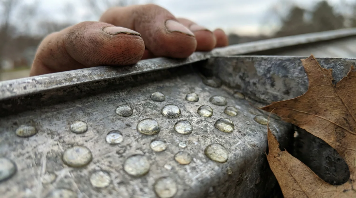 Durante años nos han convencido de que la acumulación en los canales de aguas lluvias es un problema de cantidad: demasiadas hojas y demasiada tierra. Pero el verdadero culpable es la fricción. Cuando miras el fondo de un canal de PVC o de zinc envejecido, parece liso, pero a nivel microscópico es un paisaje lleno de cráteres y porosidad. Es allí donde el polvo fino de la ciudad y los restos orgánicos se aferran. Cuando cae la primera gota de agua, este polvo se convierte en una pasta pegajosa. Las hojas caen, aterrizan sobre esta pasta y, de repente, tienes una represa en miniatura que respira a través de una almohada de lodo, bloqueando por completo el flujo hacia la bajante. La creencia popular dice que debes subir a raspar esta mugre cada dos meses. Pero, ¿qué pasaría si pudieras quitarle la fricción al metal o al plástico?