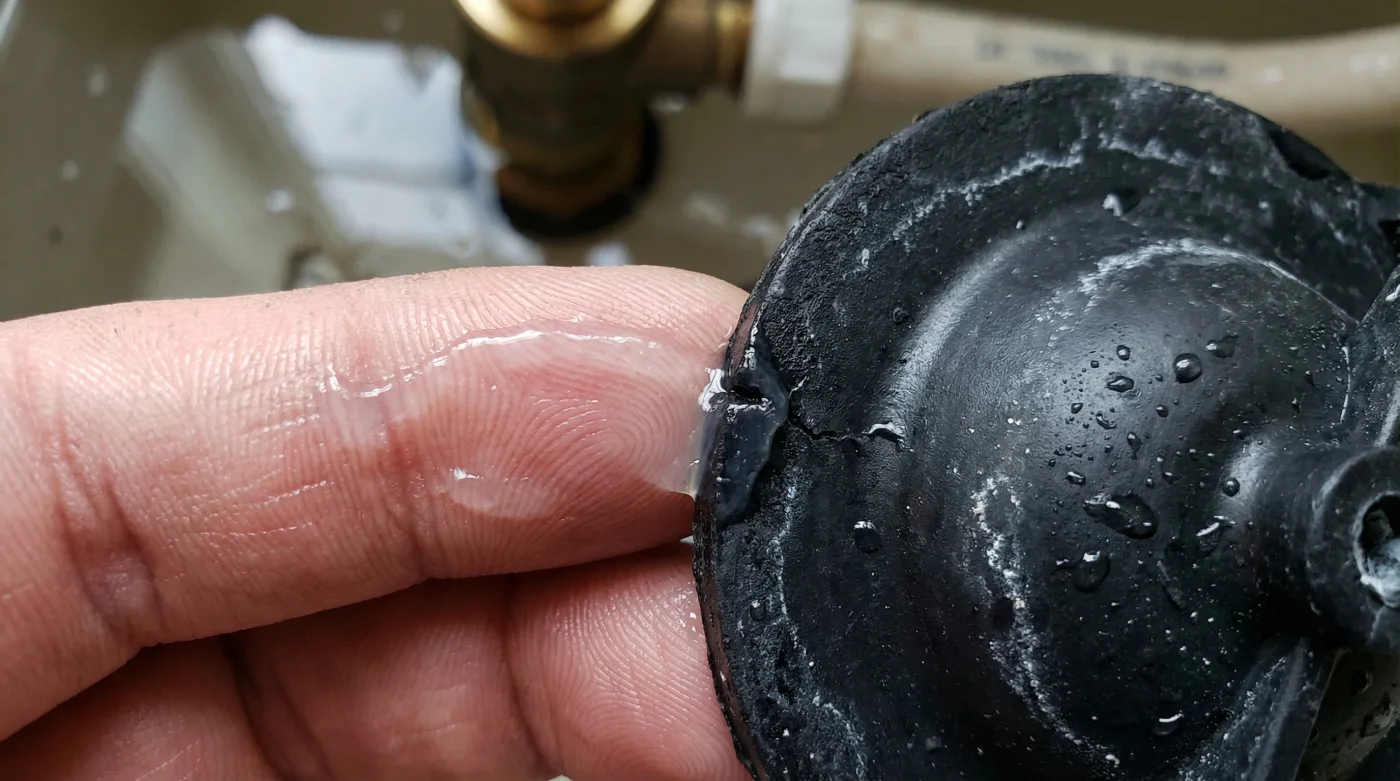 Llévalo al lavamanos. Vas a notar de inmediato que la superficie inferior se siente cubierta por una película viscosa o tiene pequeños sedimentos ásperos. Lávalo a conciencia con agua tibia y un poco de jabón suave. Luego, sécalo perfectamente con una toalla de papel o un paño limpio. Este paso es innegociable; si la goma está húmeda, la vaselina resbalará y no logrará penetrar el material.