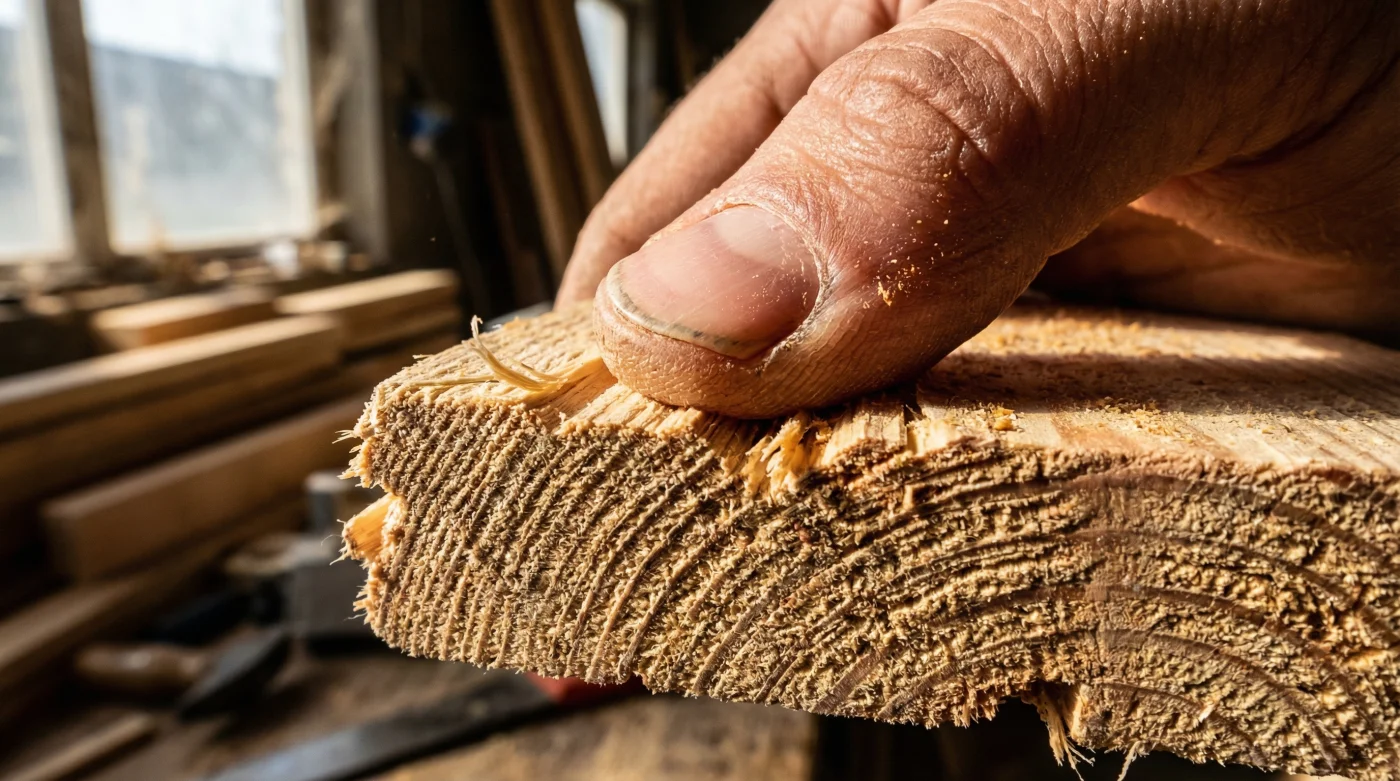 Entender cómo comprar esta madera rústica es un puro ejercicio de tacto y observación atenta. Tienes que ignorar la fealdad superficial de la pieza y concentrarte estrictamente en la geometría de la misma. Revisa mirando desde un extremo que el tablón no esté torcido como un arco de flechas y que los nudos oscuros estén firmemente adheridos a la masa de la madera.
