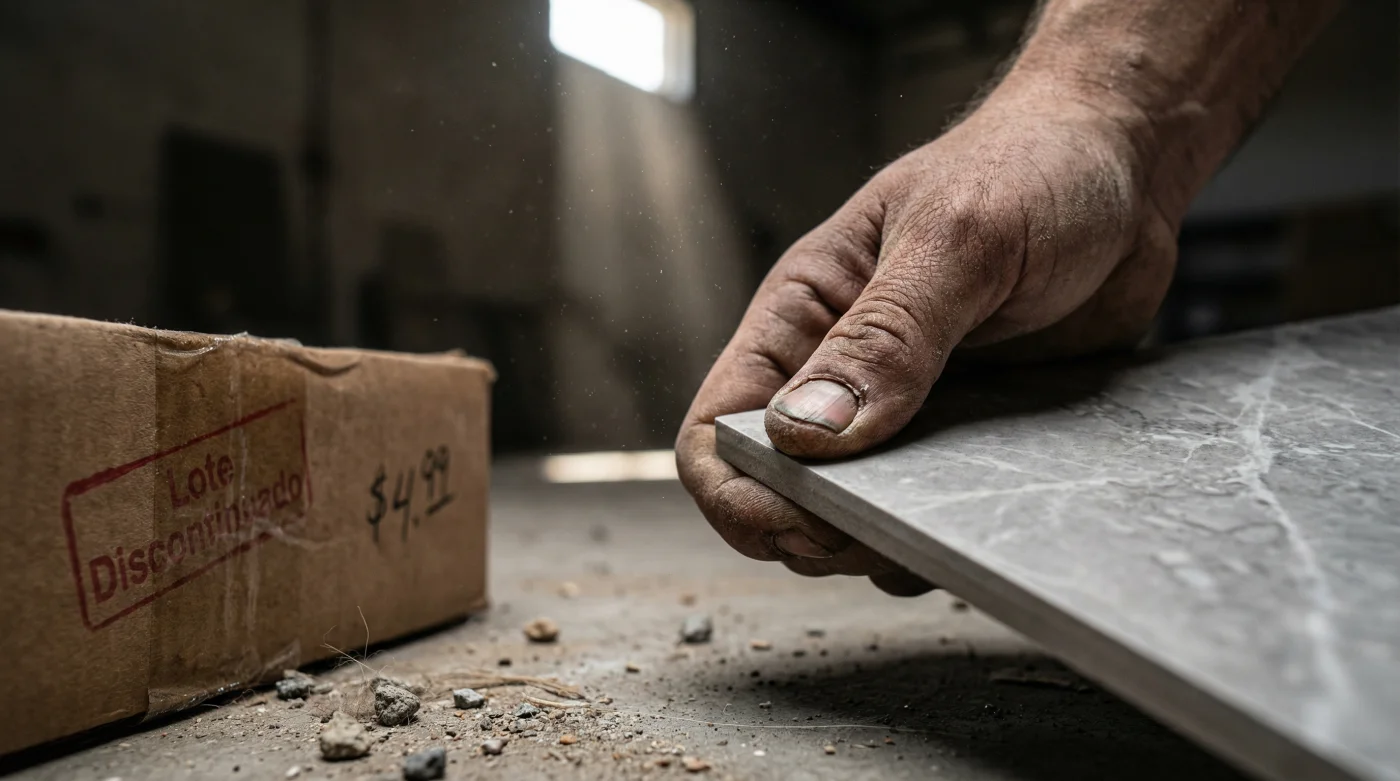 El mercado de la construcción opera bajo una lógica de flujo y rotación constante. La metáfora aquí es simple: imagina la producción de cerámica como una receta de panadería a gran escala. Cada horneada tiene un tiempo, una temperatura cercana a los 1.100 grados Celsius y una humedad específica que varía ligeramente el resultado. En el mundo de los pisos, a esto se le llama el baile de los lotes y los tonos. Cuando un diseño premium cambia sutilmente de temporada o la fábrica ajusta sus rodillos de impresión digital, las cajas de la hornada anterior se convierten en un peso muerto para las estanterías del almacén. No han perdido ni un gramo de su resistencia al desgaste ni su impermeabilidad; simplemente ya no coinciden con el nuevo código de barras y no pueden mezclarse en una obra grande. Ahí es donde tu oportunidad comienza.